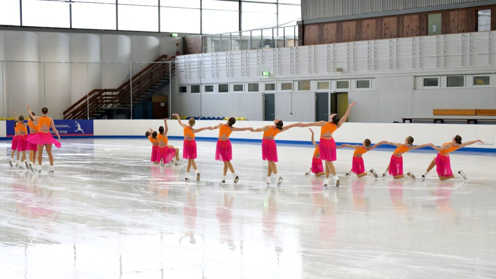 Wir laufen in der Kategorie ISU Advanced Novice – bei uns können alle im Alter zwischen 9 und 15 Jahren mit einsteigen. Ob beim Training, bei Wettkämpfen oder bei Schaulaufen: Bei uns zählen Teamgeist, Zusammenhalt und die gemeinsame Freude am Eiskunstlauf.